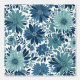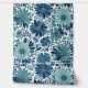 Dieses Design zeichnet sich durch ein lebendiges und elegantes Blumenmuster aus großen, stilisierten Blume in verschiedenen Blautönen und aquamarin. Die Blüten sind aufwändig mit feinen Linien und zentralen Punktclustern, umgeben von einer Reihe von grünen Zweigen und kleineren Blüten. Set vor einem weißen Hintergrund, der Kontrast verstärkt die coole, beruhigende Farbpalette und verleiht dem Design eine frische und raffinierte Note. Es erinnert an ein Gefühl von natürlicher Schönheit und Ruhe, perfekt für Textilien, Tapeten oder Schreibwaren.
