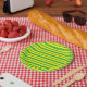 Dicke, dünne, grüne und gelbe Streifen Pappteller