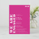 Fett schlicht weißer Neon rosa Hochzeitsfeier mit "Wir sind verlobt" geschrieben in übergroßen fetten Schriftart in Weiß