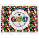 Es geht um die kühnen Farben hier, wenn Ihr Absolvent in die Welt kommt. Das Wort GRAD in vier Farben, in Segmente mit konfetti Hintergrund unterteilt. Das Muster rot, grün, blau, gelb, schwarz und weiß in halbquadratischen Dreiecken bildet den Rahmen. Alles in allem ein toller Blick für Einladungen oder Party. Personalisieren Sie mit dem Namen des Absolventen, Schule und Klasse Jahr. Matching-Produkte verfügbar.