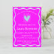 Machen Sie eine Aussage mit dieser kühnen Fuchsia und hellblauen Geburtstagseinladung! Die dynamische Farbkombination ist perfekt für ein lebhaftes und dynamisches Feiern. Passen Sie die Einladung an, den Ehrengast, die Veranstaltungszeit, das Datum, den Ort und die Informationen zur UAWG einzubeziehen. Dieses lustige Design wird die Bühne für eine unvergessliche Geburtstagsfeier Set!