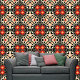 Diese Wandtafel mit Schale und Stange zeichnet sich durch ein faszinierendes Design aus, das durch kühne Farben und aufwändige Muster geprägt ist. Die dominierenden Farben sind Schwarz, Rot, Orange und Weiß. Die roten Blume haben orangefarbene Zentren, die einen lebhaften Kontrast zum dunklen Hintergrund schaffen. Der grafische Stil orientiert sich an der Volkskunst. Es fühlt sich handgefertigt an, als ob jemand es direkt an der Wand gemalt hätte. Die Bio Formen und die unvollkommenen Konturen verleihen ihm eine authentische, entspannte Atmosphäre. Das sich wiederholende Muster umfasst stilisierte Blumenmotive und reißförmige Elemente. Die Blume sind durch empfindliche schwarze Linien miteinander verbunden und bilden ein komplexes Netzwerk. Wenn sie auf eine Wand aufgetragen werden, verändert diese Tapete den Raum. Es ist auffällig, warm und fügt eine Touch böhmischen Charmes hinzu.