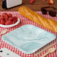 Dicke geometrische Muster auf Tellern mit quadrati Pappteller