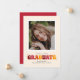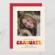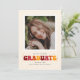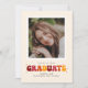 Diese lustige Retro-inspirierte Abschluss-Ankündigung enthält das Wort Graduate geschrieben in fett dunkelrot, orange und goldgelb. Es hat sowohl vorne als auch hinten Platz für ein Foto. Die Rückseite enthält auch Platz für mehr Text.