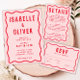 Fett hellrosa Rot Squiggle Wavy Retro Hochzeit Einladung