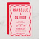 Dicke, hellrosa Rot Squiggle Wavy Retro Hochzeit Einladung