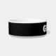 Moderner schwarzer Hund füttre Schüssel mit dem Namen Ihres Haustieres in Weiß.