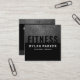 Moderne, männliche, dunkle Visitenkarten mit schwarz anpassbarem Text "Fitness" auf einem rauen, dunkelbetonten Hintergrund mit Namen und Titel unten. Anpassbare Vorlagenfelder für Namen, Titel und Kontaktinformationen auf der Rückseite.