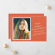 Feiern Sie Ihren Absolventen stilvoll mit dieser orangefarbenen Terrakotta-Fotokarte mit Retro-weißem Skripttext. Dieses Design verbindet eine herzliche Botschaft mit einem persönlichen Foto für eine unvergessliche, klassische und moderne Ankündigung. Ideal für Senioren, die ihre Persönlichkeit gewollt haben, um mit einem kühlen, bunten Rand zu glänzen.