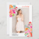 Feiern Sie Ihren Meilenstein mit diesem kühnen und fröhlichen handbemalten Abschluss dank Ihrer Karte. Mit lebhaften handgemalten Aquarellfloralen in knalligen Orange-, Rosa- und Korallentönen bringt dieses Design Persönlichkeit und Freude in Ihre Dankesbotschaft. Die Rückseite zeigt ein beliebtes Foto, während die Vorderseite ein herzliches Dankeschön an Freunde und Familie. Ideal für den Frühlings- und Sommerabgänger, der etwas Glanzvolles, Mut und Einzigartiges will.