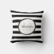 Ein kühn schwarz-weiße Rugby Streifen quadratisch werfen Kissen. Personalisieren Sie dieses Designermuster, indem Sie Ihren Namen und den mit Monogramm Initialnamen hinzufügen. Dieses angesagte Monogramm-Design ist Teil der Black Stripes Bedroom Decor Summer Color Collection.