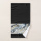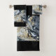 Schwarzes Handtuch mit feinem schwarzem Gold und Abstraktem Border (weißer Rücken) als Set oder einzeln erhältlich. Original Malerei von R. Lamb