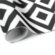 Lassen Sie Ihre Geschenke mit einer modernen Geschenkverpackung mit einem fett schwarz-weiß geometrischen Muster auffallen. Schwarze Diamanten mit weißen Rändern sind von schwarzen Mäandern umgeben, die um sie kreisen. Weiße Zickzackgassen sorgen für eine feine Trennung zwischen den gewundenen Pfaden. Ideal für Schwarz-Weiß-Partys und andere Anlässe. Digitales Bild. Copyright ©Claire E. Skinner. Alle Rechte vorbehalten.