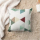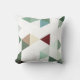 Eine gewagte geometrische Anordnung von Dreiecken, meistens in Salbei und Grüntöne, mit einem Bindestrich aus Bordeaux, Bräune, Grau und Weiß.