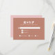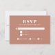 Diese moderne RSVP-Karte verfügt über eine schicke Terrakotta-Front mit minimalistischem Layout und eignet sich ideal, um stilvolle Reaktionen Ihrer Gäste zu erfassen. Auf der Karte befinden sich Checkboxen für die Auswahl der Speisen, die es einfacher machen, die Ernährungsgewohnheiten zu berücksichtigen. Die Rückseite fügt ein weiches, komplementäres Rosa für eine zusätzliche Touch von Eleganz hinzu. Ideal für rustikale, boho- oder zeitgenössische Themen, verbindet diese RSVP-Karte wunderbar mit der Koordination der Fledermausmitzvah-Einladungen.