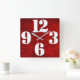 Dicke Ziffernseite an der Wand am roten Quadrat Quadratische Wanduhr