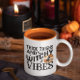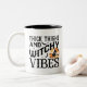 Dickige Oberschenkel und Hexerei Vibes Zwei-Tonen-Kaffee- und Teesorten-Tasse mit lustiger Halloween-Typografie und einer Hexe, die am Vollmond vorbeifliegt. Dieser lustige Schlamm macht eine ausgezeichnete Geschenkidee für die Halloween-Saison. Oder noch besser, fügen Sie zu Ihrer Sammlung und erhalten Sie eine für sich! Die Innenfarbe und die Tasse sind vollständig anpassbar. Frohe Halloween!