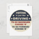 "Abstimmung ist wie Fahren; rückwärts gehen, R wählen, vorwärts gehen, D. wählen.."Demokraten, immer der kleinere von zwei Übeln!" T-Shirts, Knöpfe, Wahlkampfswag.