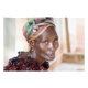Die Frau ist mit einem Kopftuch und einem Caracas gekleidet.