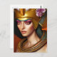 Die atemberaubende KI machte auf der Postkarte von Fantasy-Figuren "The Egyptian Queen", eine wunderschöne farbige Frau mit aufwändiger Kopfbedeckung und Dekoration.