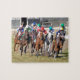 Der bestste Moment Pferdelaufens, als Thoroughbreds zu die Spitze der Ausdehnung auf dem Rasen machen. Diese Hauptansicht von Dutzend Rennpferden, mit ihren plätschernden Muskeln kämpfen zur Endlinie in den Fotoendnasen auseinander an historischem Parx Laufen und an Kasino für die Ausführung die jährlichen Alphabet-Suppenstangen auf dem Gras. Javier Castellano auf der Schiene, mit den gelben Kappen- und Königsblauseiden, geht mit aus erster Hand bezogenem Bericht, das einzige Stutenfohlen zu verdrahten der Draht, im Rennen.