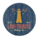 Leuchtturmbewegt Seestrandbootsseeozeanküsteufer Seashell-Muschelküstensegelsegelboot-Jachthafenbrandung Leuchtturmanker der alter abstrakter nautischvektorRetro Aufkleber der Leuchtturm-Kleidungs-Co. oder die Logo-Schablone mit strukturiertem Hintergrund wellenartig. Auch gut für T - Shirt-Druck, Flayers, Plakate, etc. | © und ® Bigstock® - alles berichtigt reserviertes.