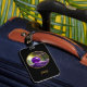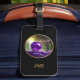 Das stilvolle Gepäckanhänger-Design zeichnet sich durch eine wunderschöne künstlerisch-künstlerische Fantasy-Kunst aus, die von einer magisch-mystischen Amatystik-Kristallorb stammt, die in einem Wald schwimmt. Runde Grafik mit goldenem Rand auf schwarzem Hintergrund. Anpassen mit Monogramm oder Namen im modernen Script-Schriftart