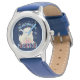 Kinderuhr aus Edelstahl mit blauem Lederarmband