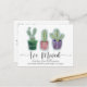 Lass deinen Freunden und der Familie deine neue Adresse mit dieser modernen Ankündigungskarte "Cactus" kennen. Dieses Design umfasst 3 Pflanze mit Topfkaktus. Originelle Kunstwerke, die mit digitaler Aquarellfarbe für Sie erstellt wurden. Der große "Zuhause Sweet Zuhause"-Text schafft ein cooles und überlagertes Bild, das sich in einem einzigartigen Kontrast zu den Bildern befindet. Vollständig anpassbarer Text, sehr einfach zu bearbeiten mit Ihren persönlichen Daten.