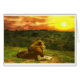 Löwe, der eine Sonnenuntergangansicht betrachtet
