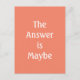 Typografie Postcard mit dem Slogan "Die Antwort ist vielleicht". Weiße Schrift auf einem gelben Hintergrund. Schicken Sie diese Karte an jeden, der Ihnen die entsprechende Frage frage, um sie lassen, wissen Sie, dass Sie ihre Anfrage berücksichtigen werden! Behalt diese Karte auf deinem Schreibtisch, um deinen Chef mit meiner Postkarte 'The Answer is No' und meiner Postkarte 'The Answer is Yes' zu zeigen! Personalisieren Sie diese Karte einfach, indem Sie den Vorlagentext bearbeiten. Danke, dass du mir meine Designs angesehen hast!