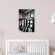 Eine Schwarz-Weiß-Kunst in einer Arkade. Das ist eine künstlerische KI.
