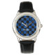 Die Armbanduhr eines erforschten Jungen personalisiert mit Kindernamen. Niedliche, personalisierbare Geschenkidee für kleine Kinder. Individuelle Kinderuhr mit Vorname oder Monogramm. Stilvolles Schwarz-Blau-Karo-Design. Anpassbare Farbe. Hervorragende Geschenkidee zum Geburtstag oder Weihnachten für Sohn oder Enkel, Enkel etc.