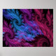 Fraktal-Muster aus dunkelrosa, lila und blau vor schwarzem Hintergrund, wie das Auge eines Hurrikans oder eines orientalischen Drachen.