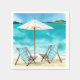 Die Aussicht auf den Strand mit zwei Liegestühlen Serviette