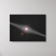 Der Blick aus der Nähe eines hypothetischen terrestrischen Planeten und Mond, der einen roten Zwergstern umkreist, der von Künstlern dargestellt wird.