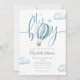 Diese charmante Babydusche lädt mit einem niedlichen blauen Heißluftballon und Wolken sowie eleganter Schrift-Typografie zum Verweilen ein. Entwickelt von Thisisnotme©