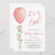Diese Babydusche Einladung ist mit einem Aquarell-Rosa-Ballon und grünem Eukalyptus dekoriert und sagt "It's a Girl!" in stilvoller Schrift-Kalligrafie. Einfach anpassbar. Original Wasserfarbe © Michele Davies.