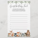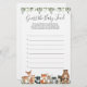 Woodland Tiere Thema Babydusche Vermutung der Baby-Food-Spielkarte bietet eine Aquarell Safari Tier Illustration und Aquarell Grüne eucalyptus Garland und elegante handgeschriebene Stil Schriftart.