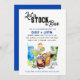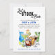 Die Einladung zur Bar-Interaktion - oder für einen anderen Anlass bearbeiten. Das Design trägt den Titel "Stock the Bar" in moderner, sonderbarer Typografie und handgeschriebener Schrift. Die Aquarellbilder beinhalten eine Flasche Champagner, Trauben-Blätter, alkoholische Getränke und Cocktails.