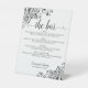 Dieses Tafelschild ist ein guter Weg, um Ihren Gästen lassen, das Bar an Ihrem Hochzeitsempfang zu kennen. Es zeichnet sich durch ein schlichtes, aber elegantes Schwarz-Weiß-Design aus, mit extravaganten Schriftzeichen und dekorativen Wirbel in den Ecken. Der Titel lautet: "The Bar," und es gibt Platz für Ihre Getränkekarte sowie die Namen des Ehepaares und das Hochzeitstag.
