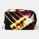 Das abstrakte Originalfoto von ZoeSPEAK auf diesem Dopp-Kit mit einem Music Theme konzentriert sich auf die Basis einer elektrischen Bassgitarre, dem Teil, wo die Saiten beginnen und sich bis zum Hals erheben. Die Foto-Färbung in der Nähe erfolgt in kräftigen, warmen Braun mit goldenem Licht auf der Metallplatte, Fäden, Schrauben und Federn.