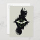 Grafik von Batman in Gothams Skyline und The Riddler auf dem Kopf in der gleichen Skyline, mit dem Bat Logo und dem Fragezeichen in der Mitte.