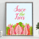 Rett die Bäume rosa und grüne Frühlingsposter Öko. Frühlingsökologisches Poster mit einem rosa und grünen Wald von Bäumen und die Worte rettete die Bäume. Wählen Sie Ihre eigene Hintergrundfarbe und personalisieren Sie dieses individuelle Design mit Ihrem eigenen Text.