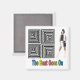 Ein quadratischer Magnet mit einem Bild von grauer und schwarzer Op Art, einer in Schwarz-Weiß-Mod gekleideten Frau und den Worten "The Beat Goes On" unten in Regenbogenbriefen. Sehen Sie sich die gesamte Disco 70er Magnet-Sammlung in den SPEZIELLEN TOUCHS an. | Abschnitt Gastgeschenke.