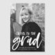 Stilvolle, moderne Ankündigungsmagnet mit dem vertikalen Foto des Absolventen mit "Cheers to the grad" in einem weißen, handgeschriebenen Pinselskript. Personalisieren Sie die Front der Ankündigung des magnetischen Abschlusses, indem Sie den Namen, den Schulnamen und das Abschluss Jahr des Absolventen hinzufügen.