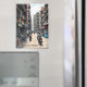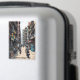 Cartoon ai Illustration der Innenstadt von Kalkutta, Indien Ein Magnet mit einer Darstellung der geschäftigen Innenstadt mit Gebäude, Restaurants, Geschäften und Menschen auf ihren Motorrädern.