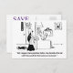 Vintage Save the Date Karte, Schwarz-Weiß-Illustration mit lustigem Text.