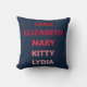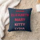 Kissen mit den Namen der Bennet-Schwestern in verschiedenen Rosatönen von Pride und Prejudice von Jane Austen: Jane, Elizabeth, Mary, Kitty und Lydia. Ein tolles Kissen für Buchliebhaber und Fans von Jane Austen. © Bookish and Wonderful