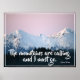 Dieses Poster zeigt ein Foto eines schneebedeckten Alaskan-Gebirges bei Dämmerung mit einem schönen rosa Himmel. Das Zitat von John Muir: "Die Berge rufen, und ich muss gehen."